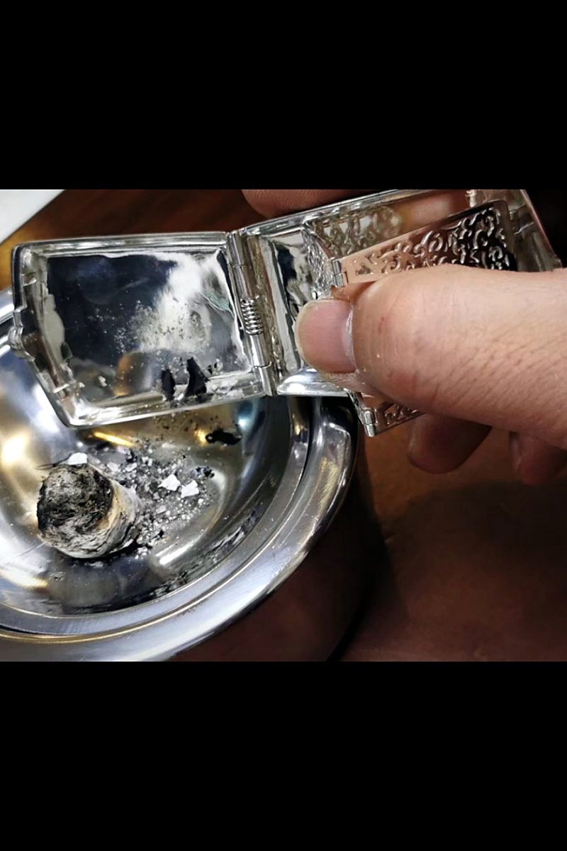 The cigar stand is made of pure silver. Artisans use chiseling and hollowing techniques to carve vine and cloud patterns on its surface, echoing the gemstone elements of the cigar cutter for a unified overall style. With a carving depth of 0.3 - 0.5mm, it effectively reduces weight while maintaining stability. When folded, it is only 1.8 cm thick and can easily fit into a suit pocket or storage box. The pure silver undergoes special treatment for long-lasting anti-oxidation properties.