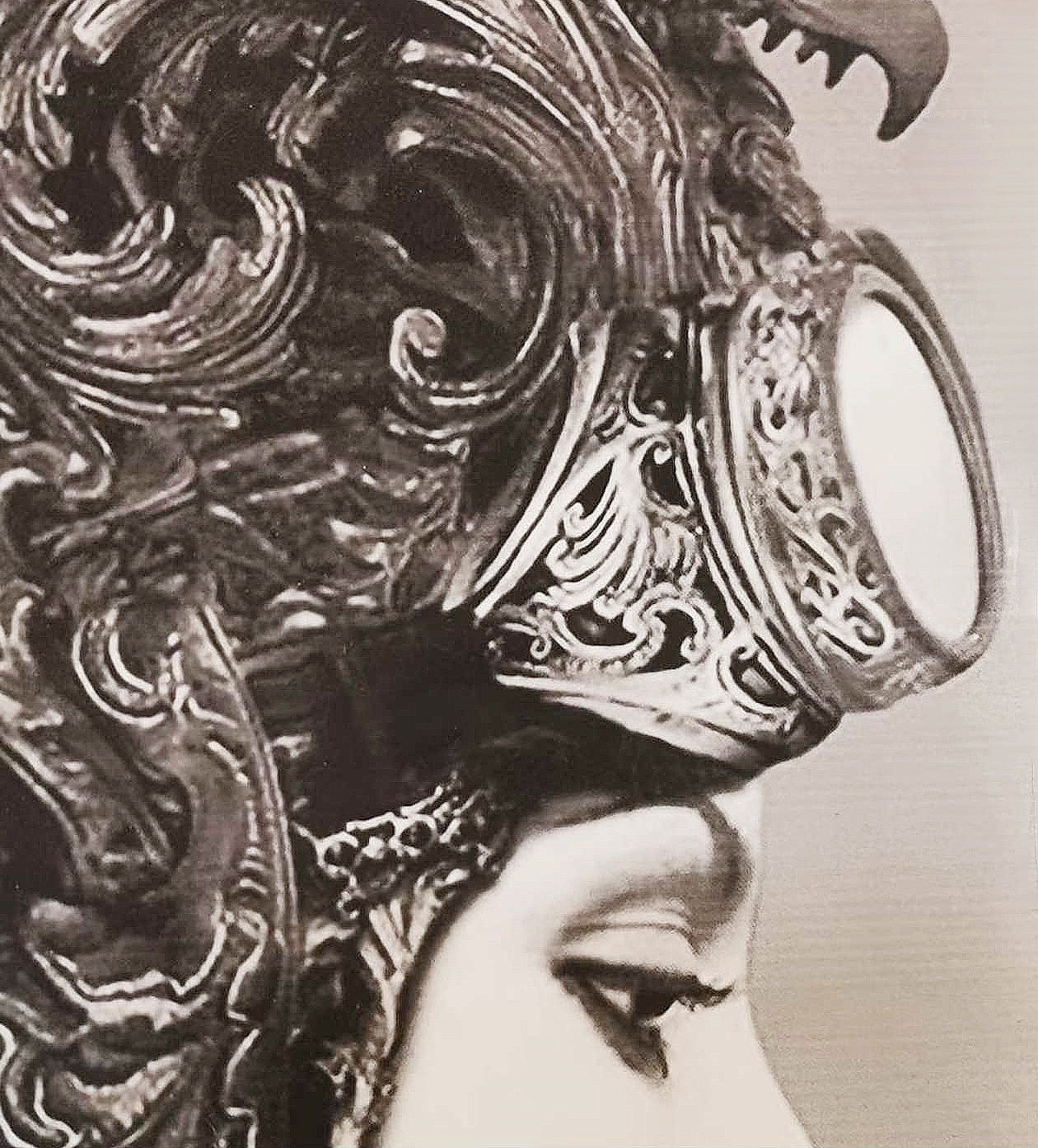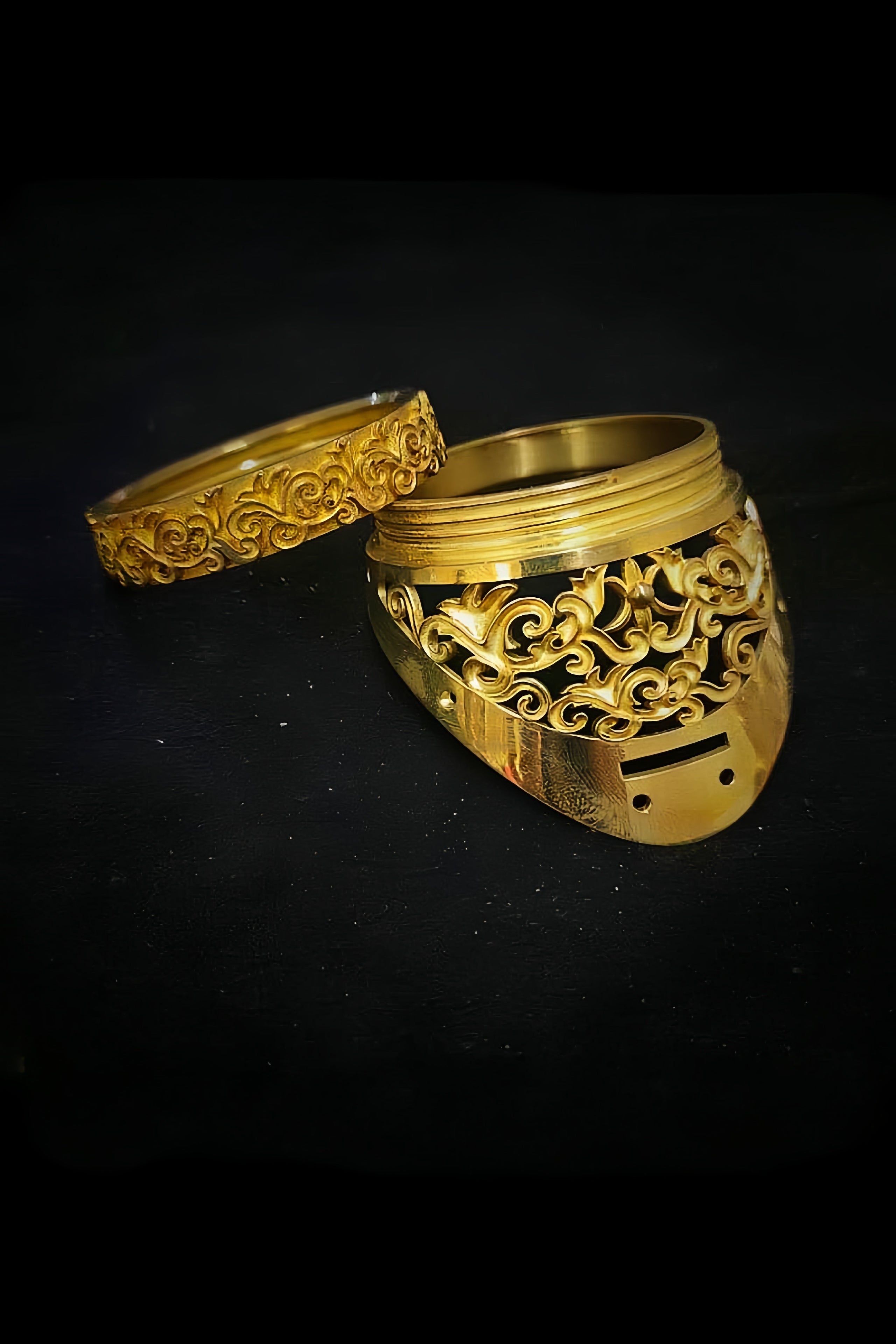 Inspired by the helmets of ancient Roman female gladiators, the frame is crafted from 925 sterling silver, with an optional gold-plating finish that bestows a luxurious luster. This opulence clashes beautifully with the Tang grass patterns, creating a texture that balances strength and softness.