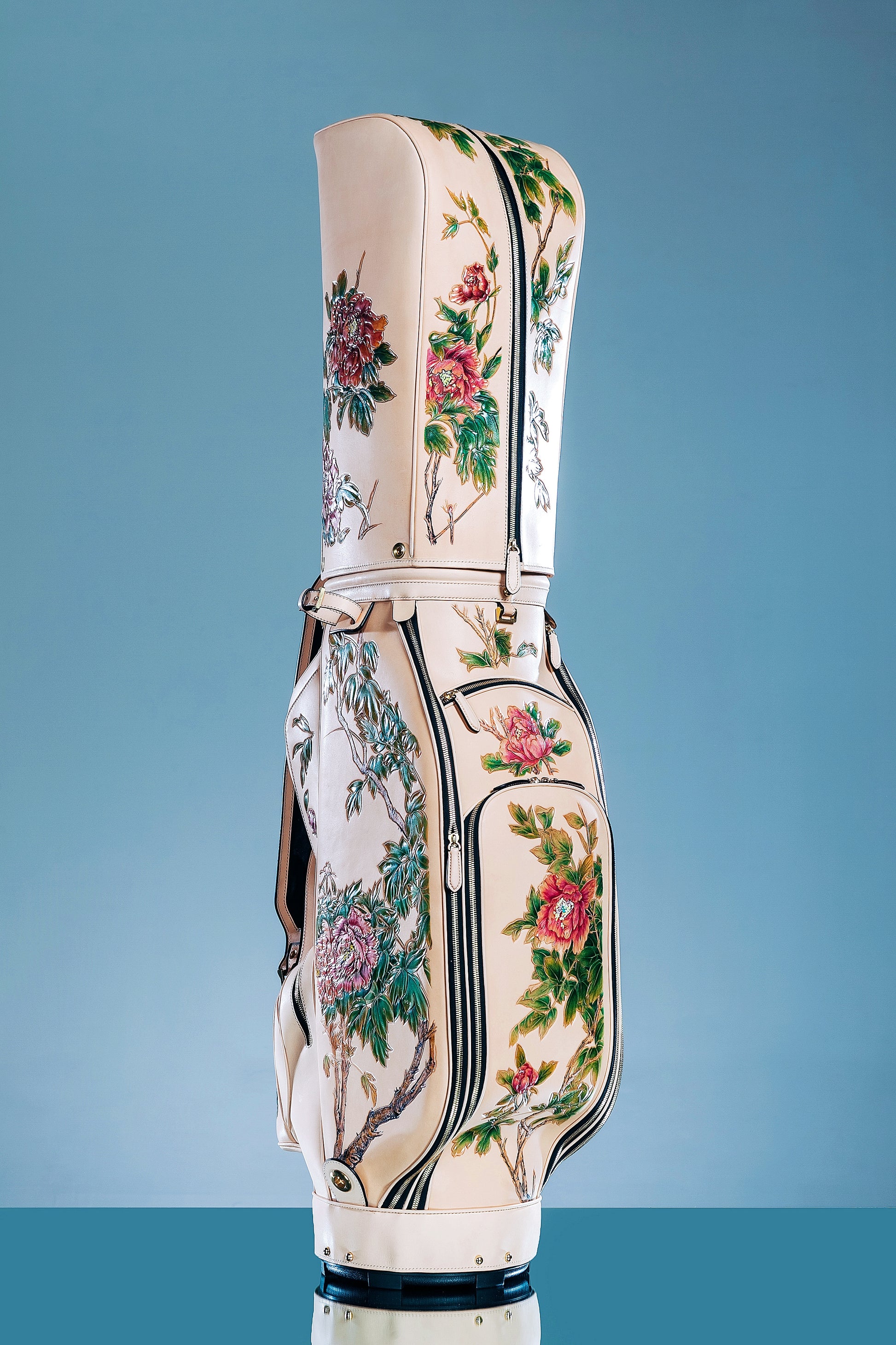 Craftsmen carve by hand, with petals spreading and delicate lines, making each golf bag an exclusive piece.