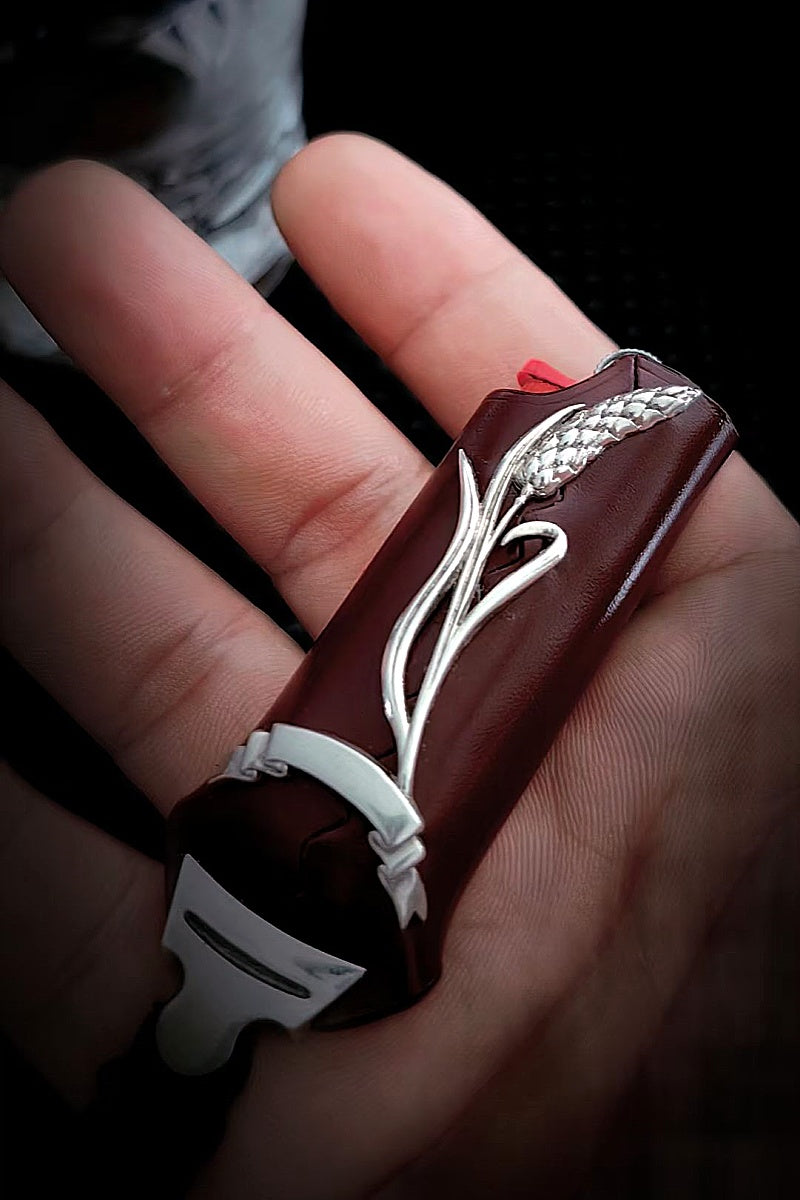 Taking the delicate and tough shell cordovan leather as the base, it exudes an aura of vintage luxury. Exquisitely carved sterling silver wheat ears are inlaid onto the leather, infusing it with the joy of harvest and hopes for the future. Here, the beauty of nature intertwines with superb craftsmanship, making this lighter holster not only a practical item but also a distinctive symbol of unique taste.
