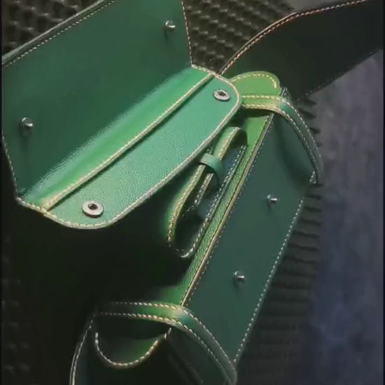 The double-pipe storage area and the side pocket adopt a double-layer drawer - type design. The outer compartment can neatly hold tools such as lighters and pipe tampers, while the inner sealed compartment made of crocodile leather stores tobacco. The snap - button opening and closing structure is adopted. The snap buttons are hidden at the edge of the side pocket, which can be easily opened by pressing. When closed, they fit tightly, ensuring strong sealing, preventing tobacco from spilling or getting damp. The operation is convenient and elegant.
