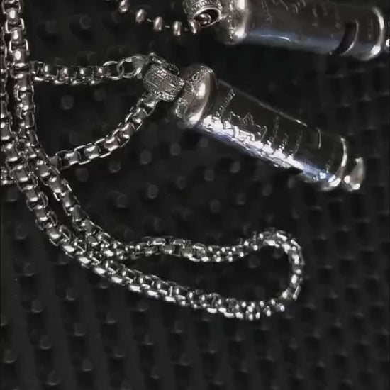 When the outdoor wind,  crisis, brushes past the ears, and when lost footsteps linger in the wilderness, this carved sterling silver survival whistle becomes a voice of hope emerging from despair.