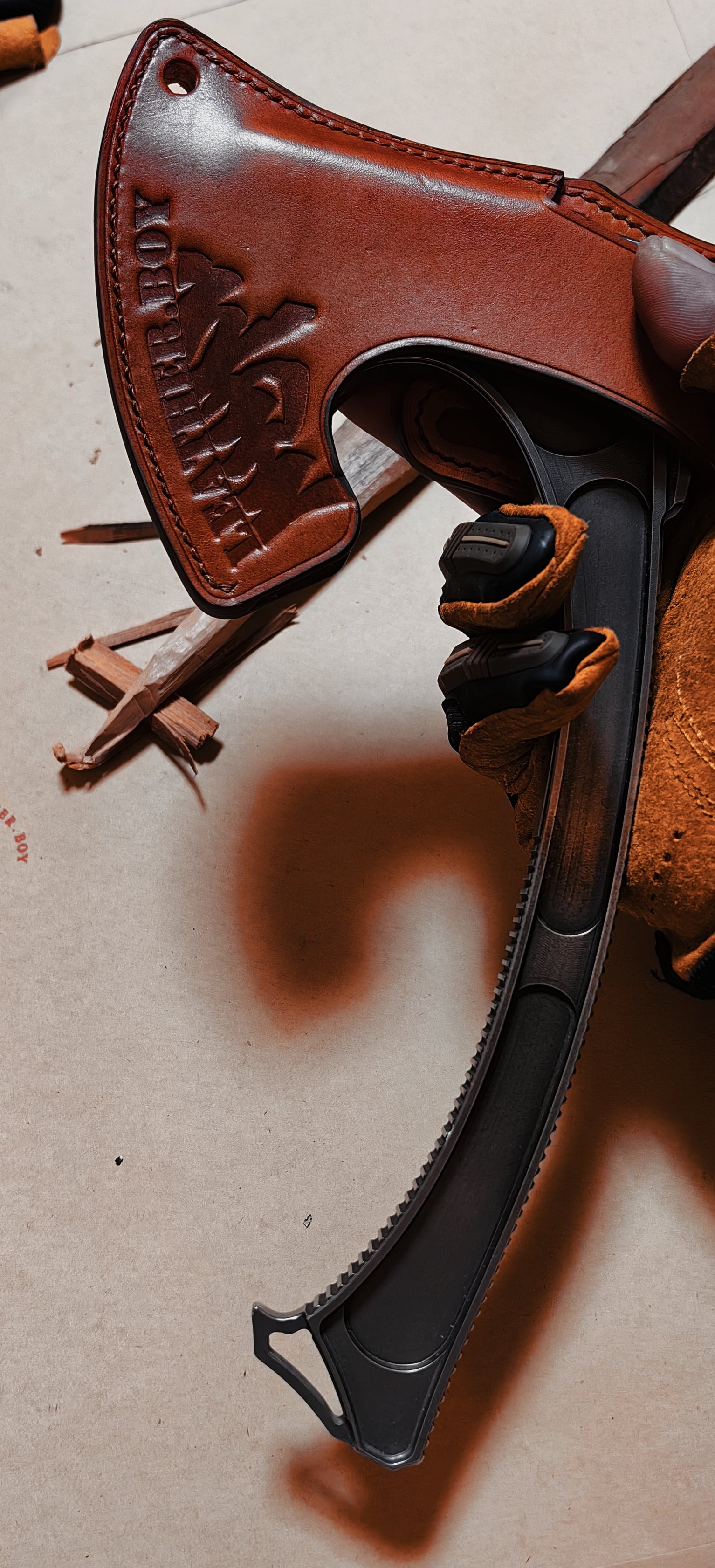 The axe blade adopts a foldable design or is equipped with a high-strength protective sheath to avoid accidental injuries during carrying. Key parts are reinforced with anti-detachment structures to prevent components from loosening or falling off during use, comprehensively ensuring user safety. The vegetable-tanned leather handle maintains good anti-slip properties in humid environments, further enhancing safety coefficients.